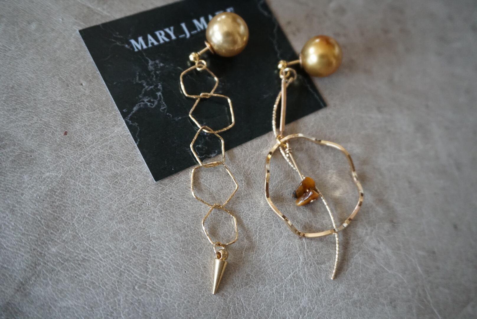 華奢なパーツを組み合わせて、存在感のあるピアスに仕上げました。