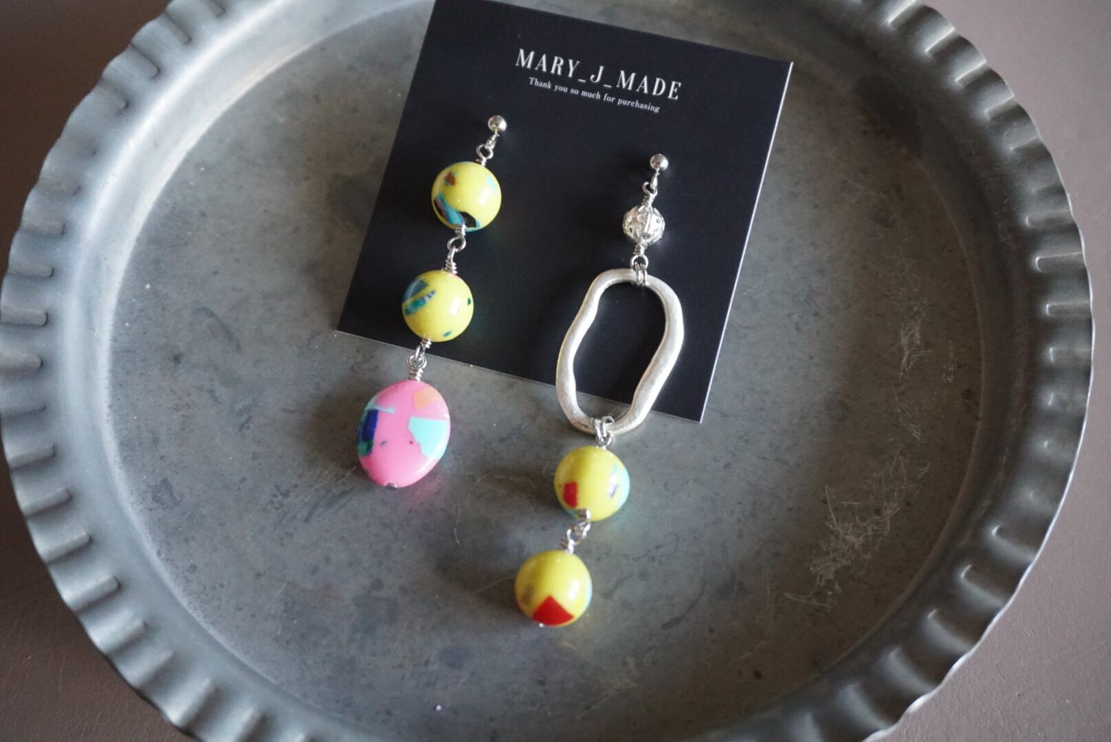 合成石ビーズを使用したカラフルな可愛いピアスです♡♡
