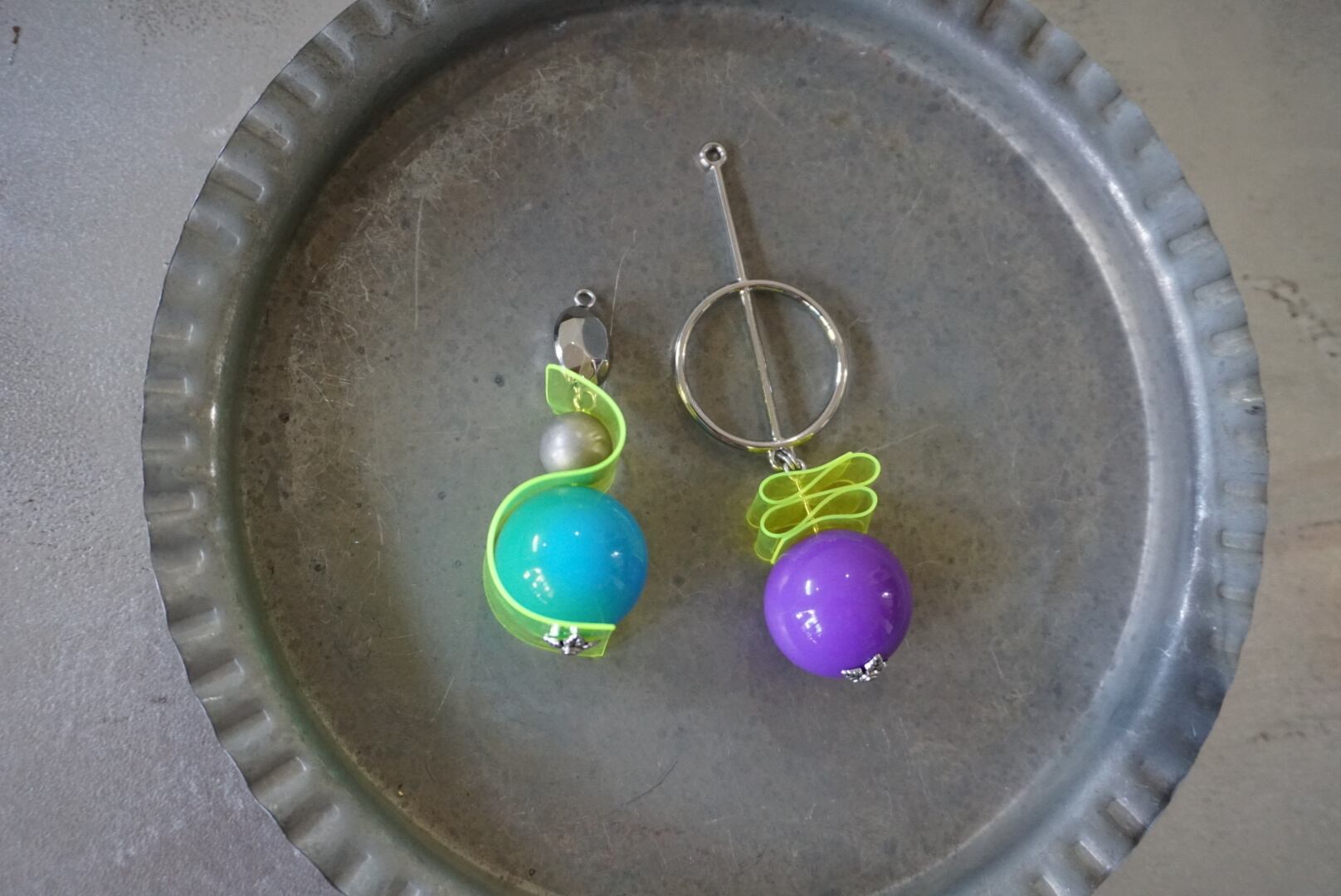 大きめな玉のアシメピアス(◍´꒳`)b