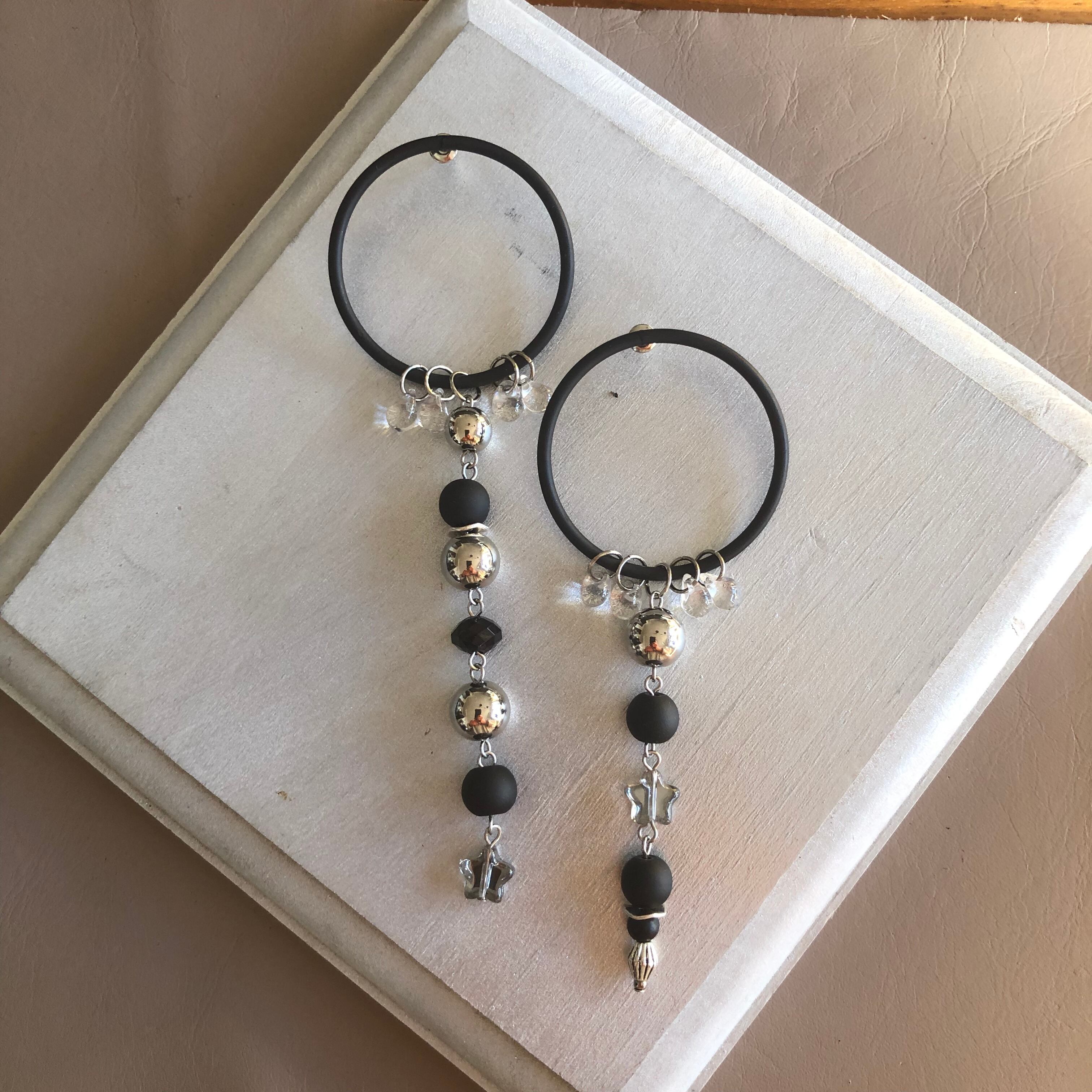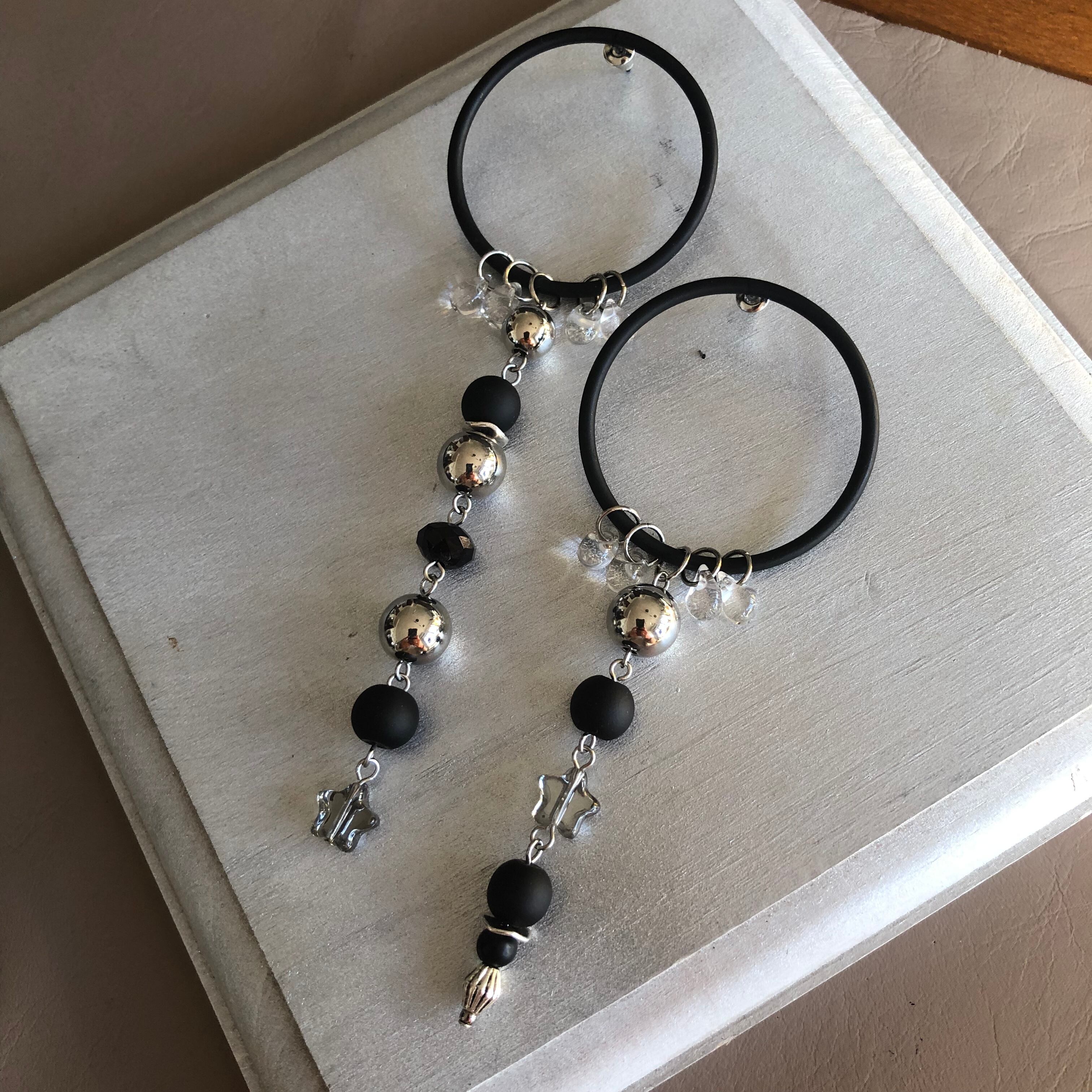 個性的なブラックのピアスです!とても軽く付けると揺れて可愛いです!!